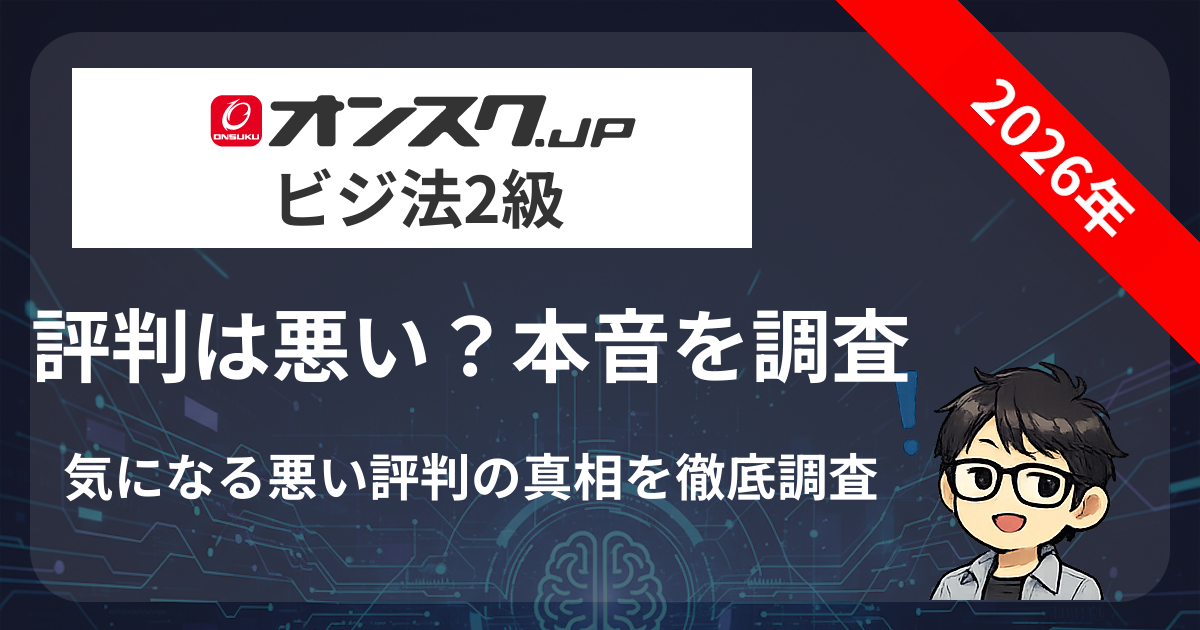 この記事では、オンスクのビジ法2級講座の悪い評判・デメリットを正直に調査しました。良い面だけでなく、申込前に知っておくべき本音の評価をお伝えします。