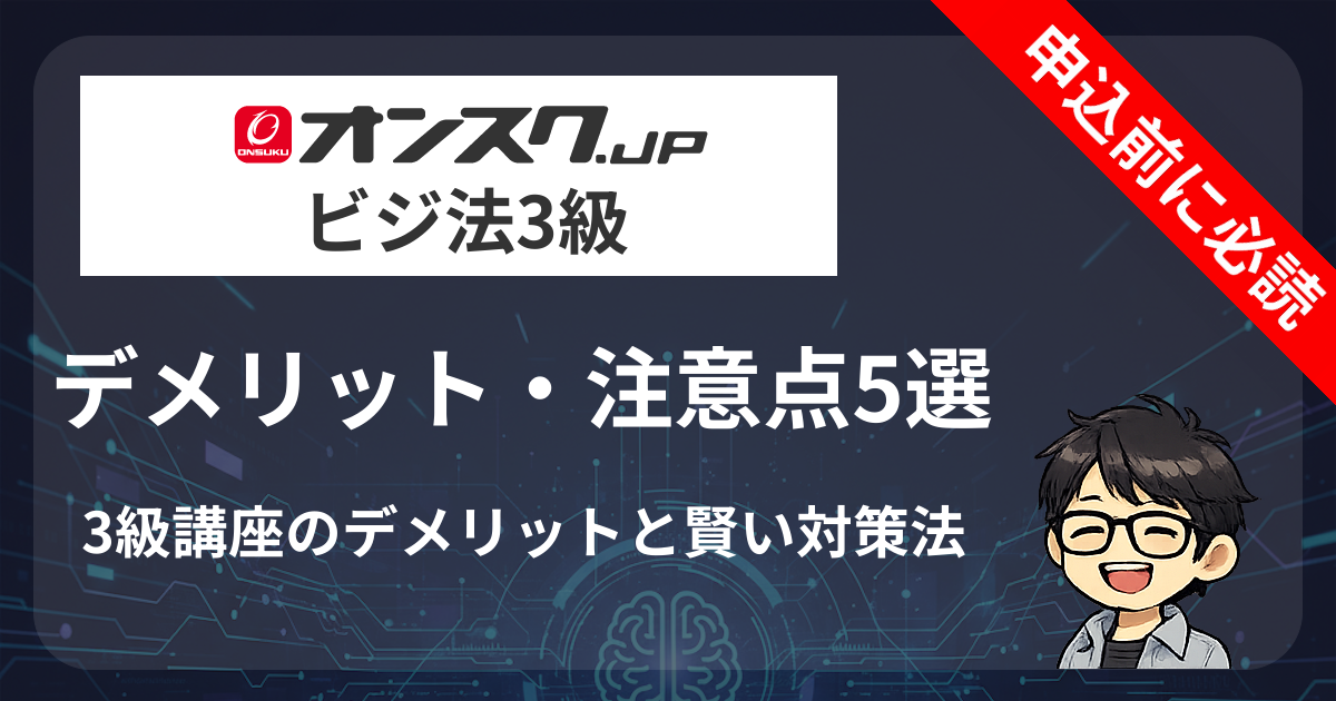 オンスクのビジ法3級講座|デメリット・注意点5選【申込前に必読】