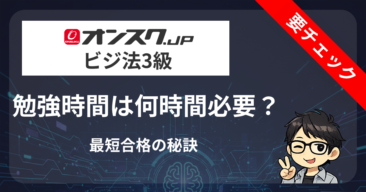 この記事では、ビジ法3級に合格するために必要な勉強時間の目安と、オンスク.JPを使って効率的に学習する方法を詳しく解説します。