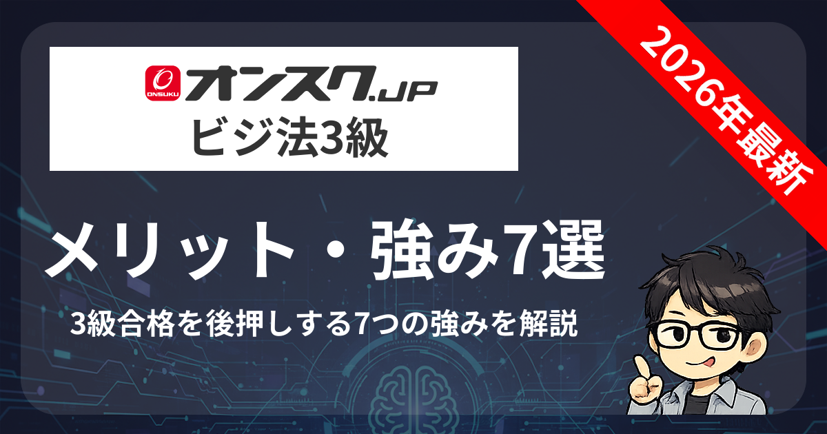 この記事では、オンスクのビジ法3級講座のメリット・強み7選を詳しく解説します。他社との比較や、各メリットを最大限活かす方法もお伝えします。