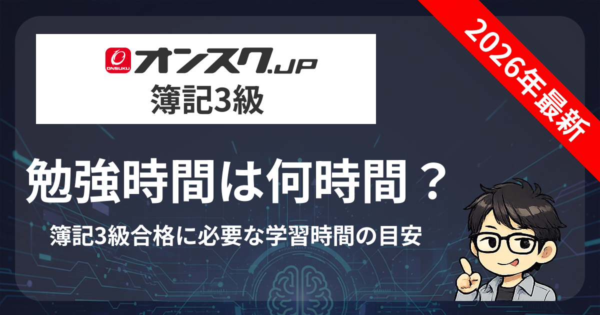月額1,078円のオンスク.JP。この記事では、オンスク簿記3級講座で合格するために必要な勉強時間を詳しく解説します。