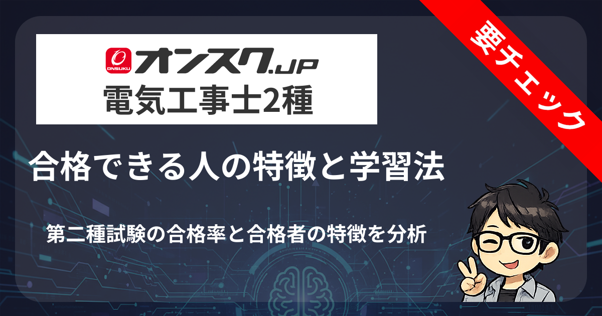 この記事では、電気工事士2種の合格率オンスク利用者の合格実績合格できる人の特徴と学習法を徹底解説します。