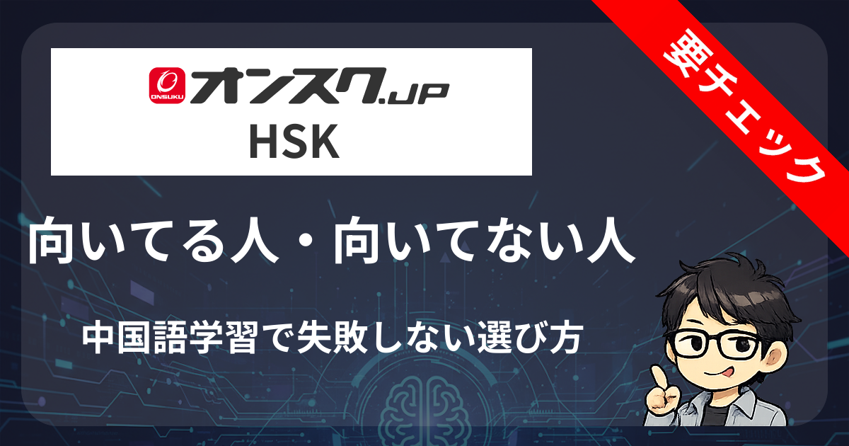 この記事では、オンスクHSK講座が向いている人・向いていない人の特徴を詳しく解説します。職業別・学習目的別のおすすめ度や、実際の利用者の声も交えて、あなたに最適な中国語講座選びをサポートします。