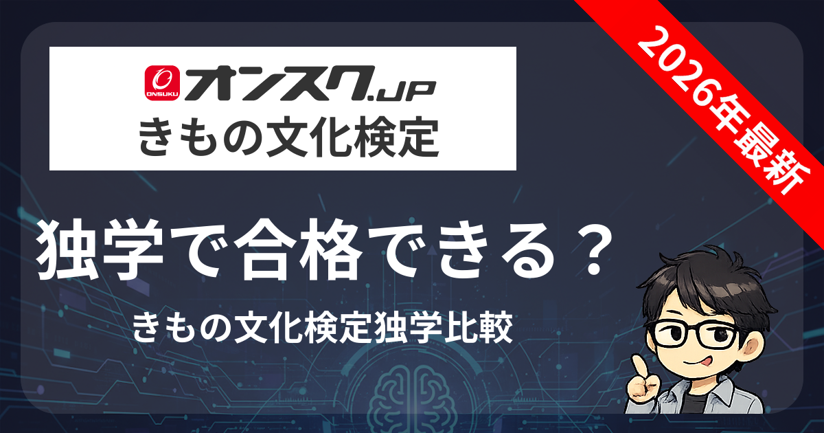 この記事では、きもの文化検定の独学での合格可能性を検証し、公式テキストのみの独学とオンスク.JPを使った学習を比較します。また、独学で合格するための具体的な勉強法、出題範囲の詳細、合格者の体験談なども詳しく解説していきます。