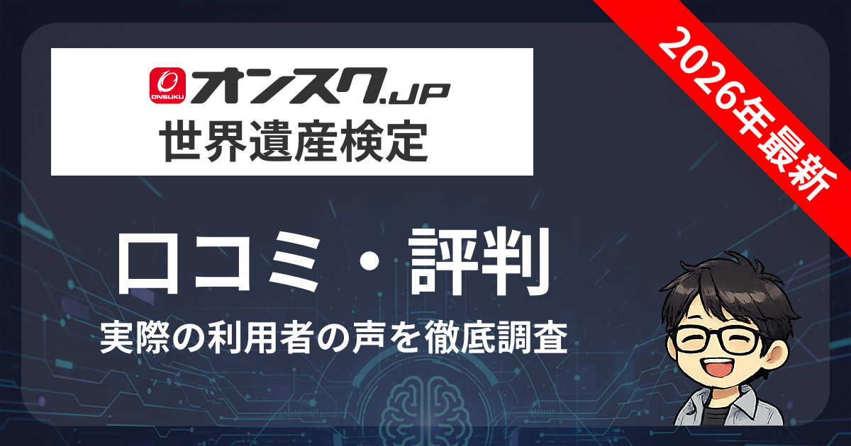 この記事では、X(旧Twitter)の投稿、レビューサイト、口コミ掲示板を徹底調査し、オンスク.JPの世界遺産検定講座の評判を正直にお伝えします。