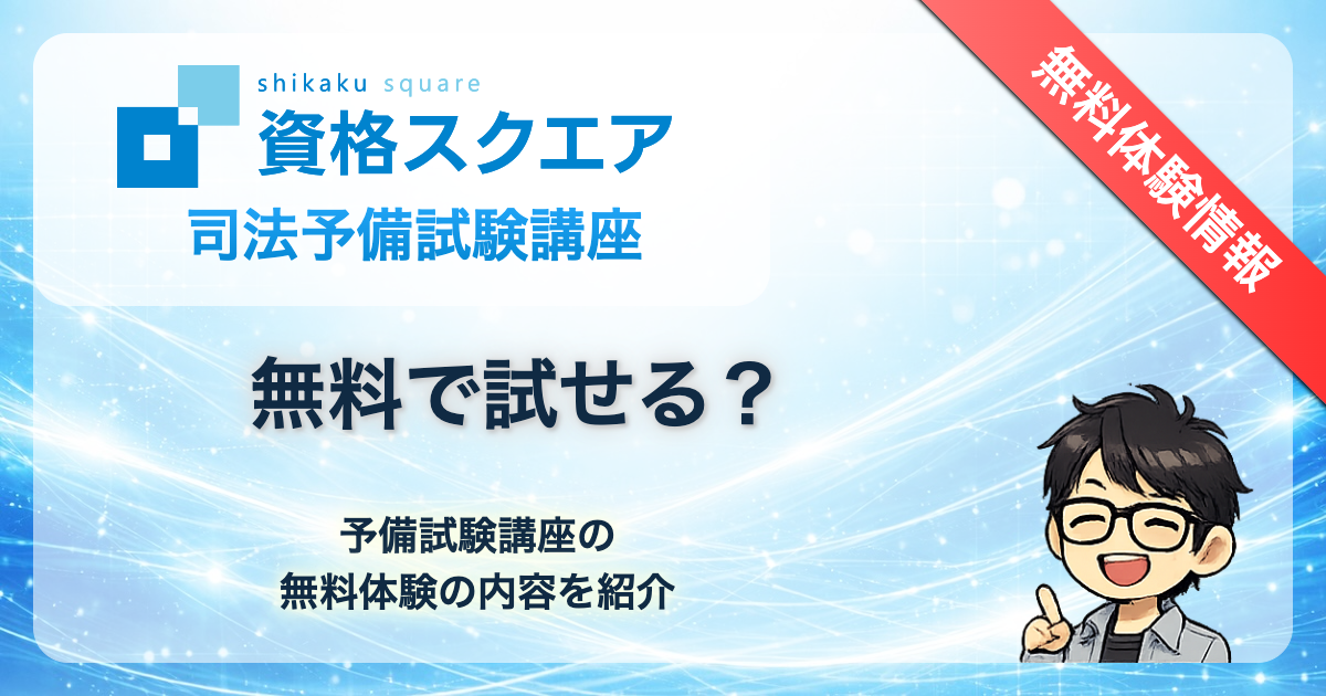 資格スクエアの司法試験予備試験講座の無料体験についてまとめます。