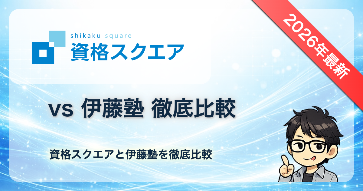 「資格スクエアと伊藤塾、どっちがいいの?」「老舗の伊藤塾と新興の資格スクエアの違いは?」そんな疑問をお持ちの方に向けて、資格スクエアと伊藤塾を5つの項目で徹底比較します。