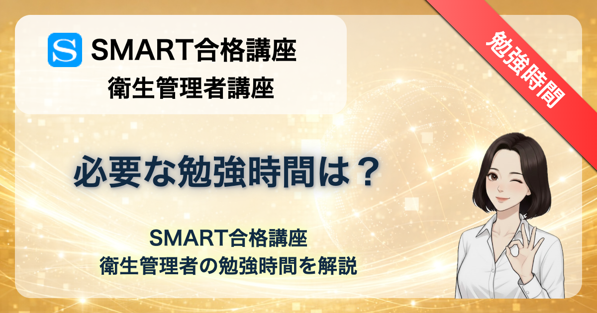 衛生管理者は短期集中で合格できる国家資格です。SMART合格講座なら 9,900円 で全科目の講義と答練が揃い、スキマ時間で効率的に学習を進められます。会社から取得を求められている方は、まず公式サイトで無料のサンプル講義を確認してみてください。