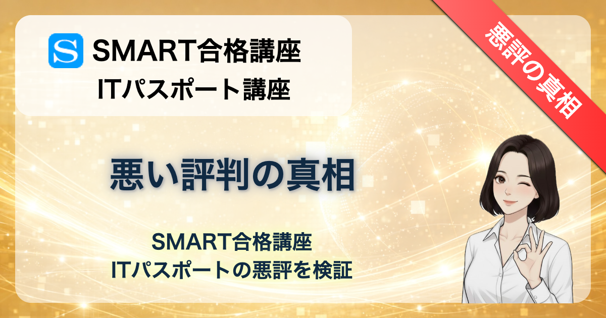 「SMART合格講座のITパスポート講座は最悪って本当?」「安すぎて不安…」「ネットで悪い評判を見たけど、実際はどうなの?」