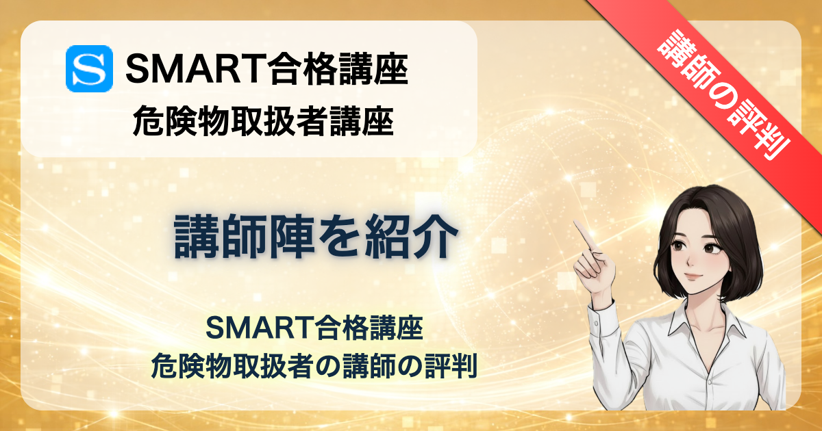 「SMART合格講座の危険物取扱者、講師はどんな人?」「7,700円の講座で講義の質は大丈夫?」