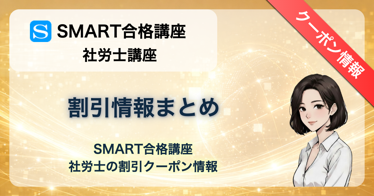 この記事では、2026年2月時点で確認できるSMART合格講座の割引・クーポン・キャンペーン情報と、お得に受講するためのコツをすべて解説します。