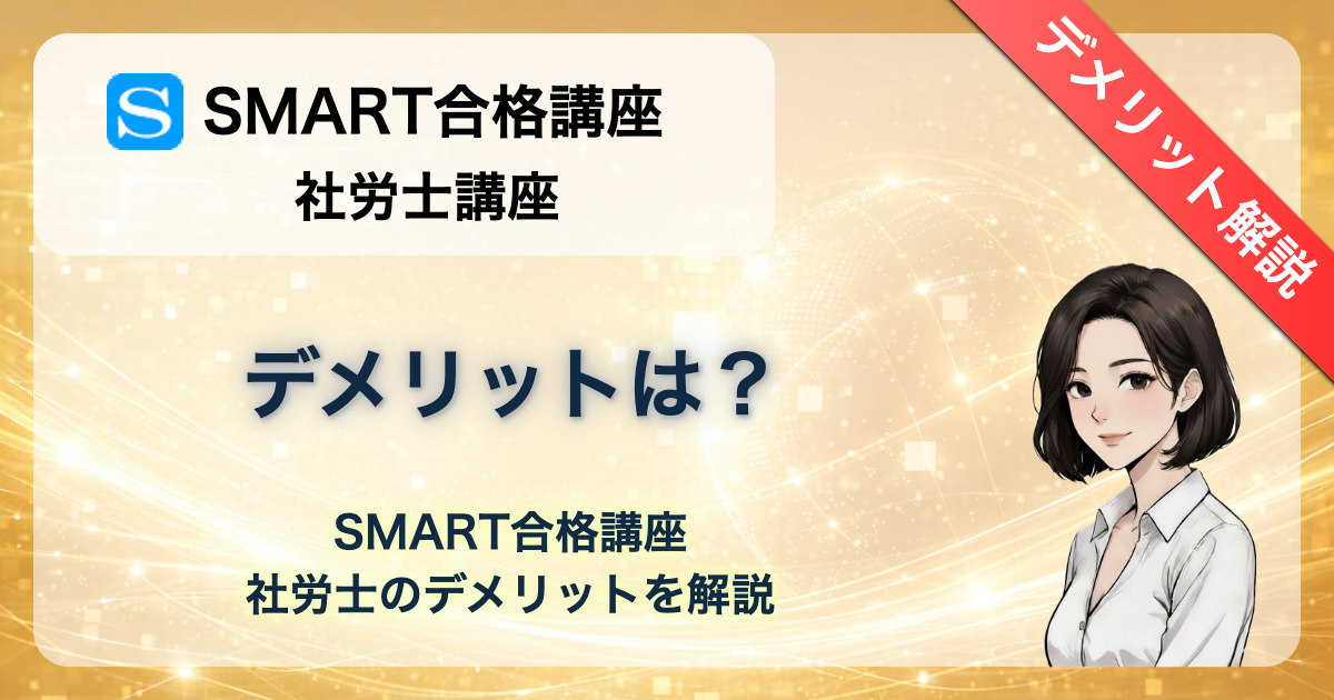 「SMART合格講座の社労士講座にデメリットはないの?」「19,800円は安すぎて逆に不安…」