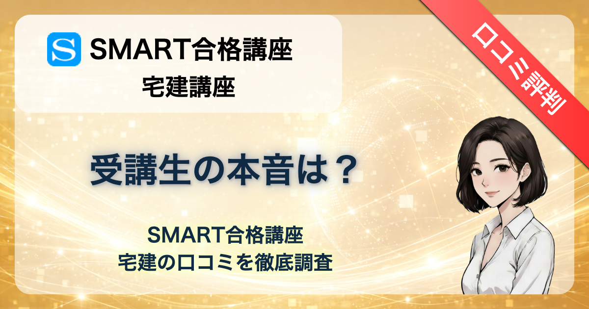 この記事では、SMART合格講座の宅建講座について、公式サイトの情報や各種口コミサイトの評判をもとに徹底調査しました。良い口コミだけでなく悪い口コミも包み隠さずお伝えしますので、受講を検討する際の参考にしてください。