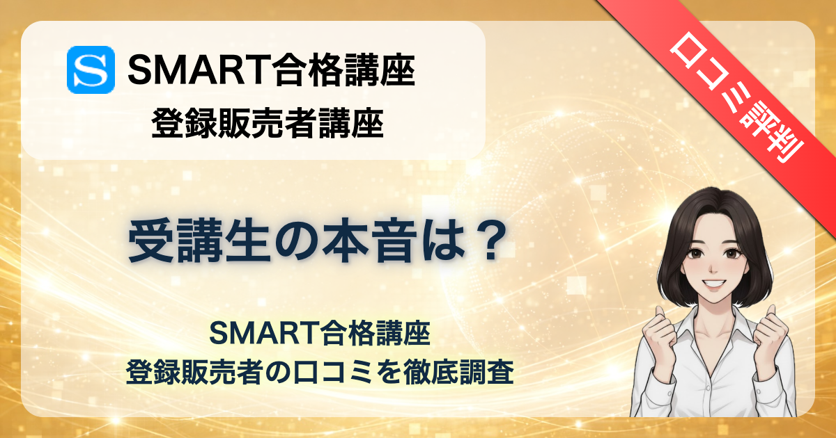 「SMART合格講座の登録販売者講座、評判はどう?」「39,600円の価値はある?」「実際に合格できる?」