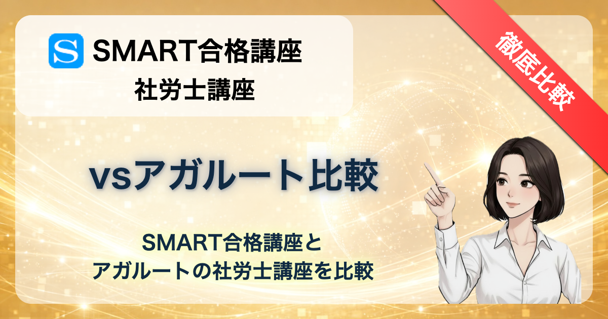 「SMARTとアガルート、社労士講座はどっちがいい?」「料金差約6.8万円は教材の差で埋められる?」「アガルートの全額返金特典は本当にお得?」