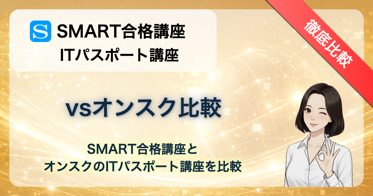 オンスク.JPの最大の特徴は 60講座以上が月額1,628円で受け放題 という点です。ITパスポートだけでなく、FP・簿記・宅建などの講座もまとめて学べます。一方、SMARTは買い切り型で 3年間追加費用なし という安心感があります。