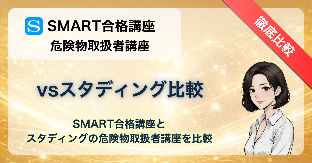 「SMART合格講座とスタディング、危険物取扱者の講座はどっちがいい?」「料金が安いのはどっち?」「教材の質はどう違う?」